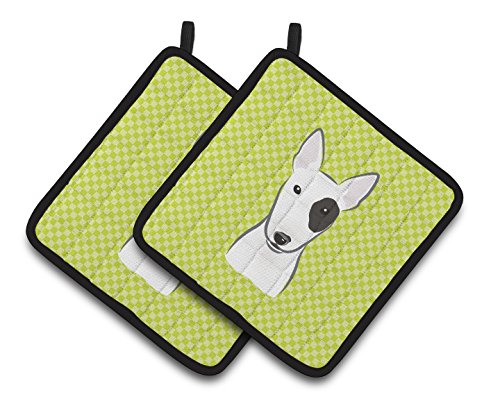 Caroline's Treasures Checkerboard Lime green Bull Terrier Pair of Pot Holders BB1271PTHD, 7.5HX7.5W, Multicolor