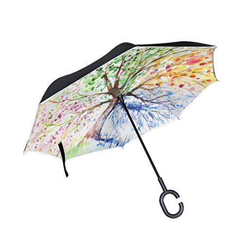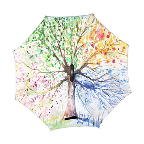 (ALAZA)/Accessories/Umbrellas/DIRECT FROM USA/ALAZA Stylish Colorful Tree of Life Windproof UV Proof Reverse Folding Umbrella, Double Layer T...