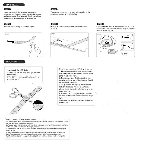 Super bright: Two times brighter than 5050 LED strip, but running at low temperature and low power consumption. High intensity and reliability.