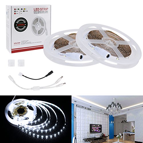 Lahoku Cold White LED Flexible Light Strip SMD5730 2 Rolls 16.4ft DC 24V Cool White Effect Lighting for Indoor Party Christmas Holiday Festival Celebration (Non-waterproof)