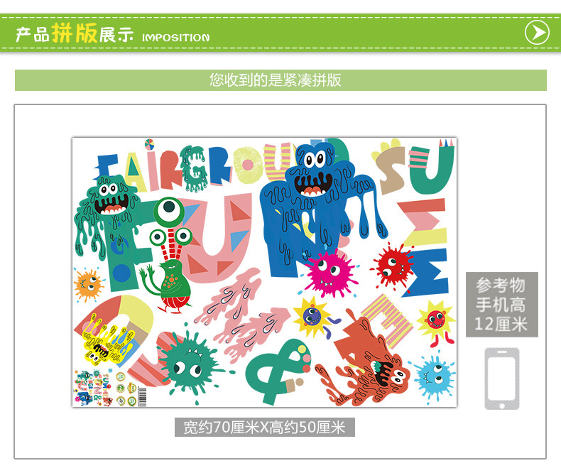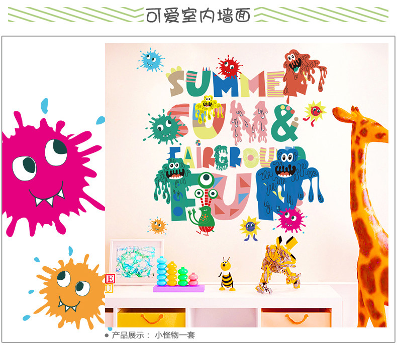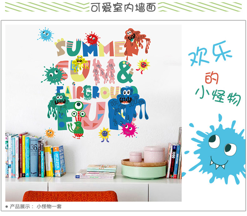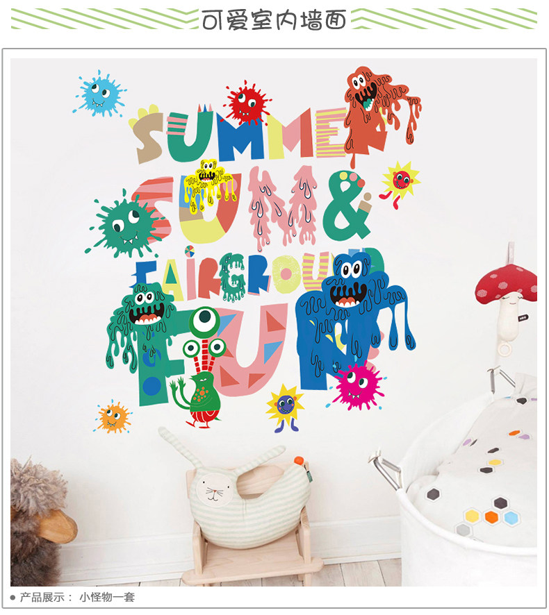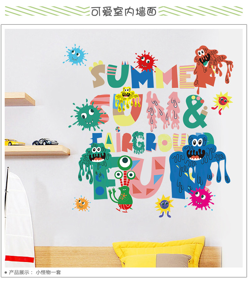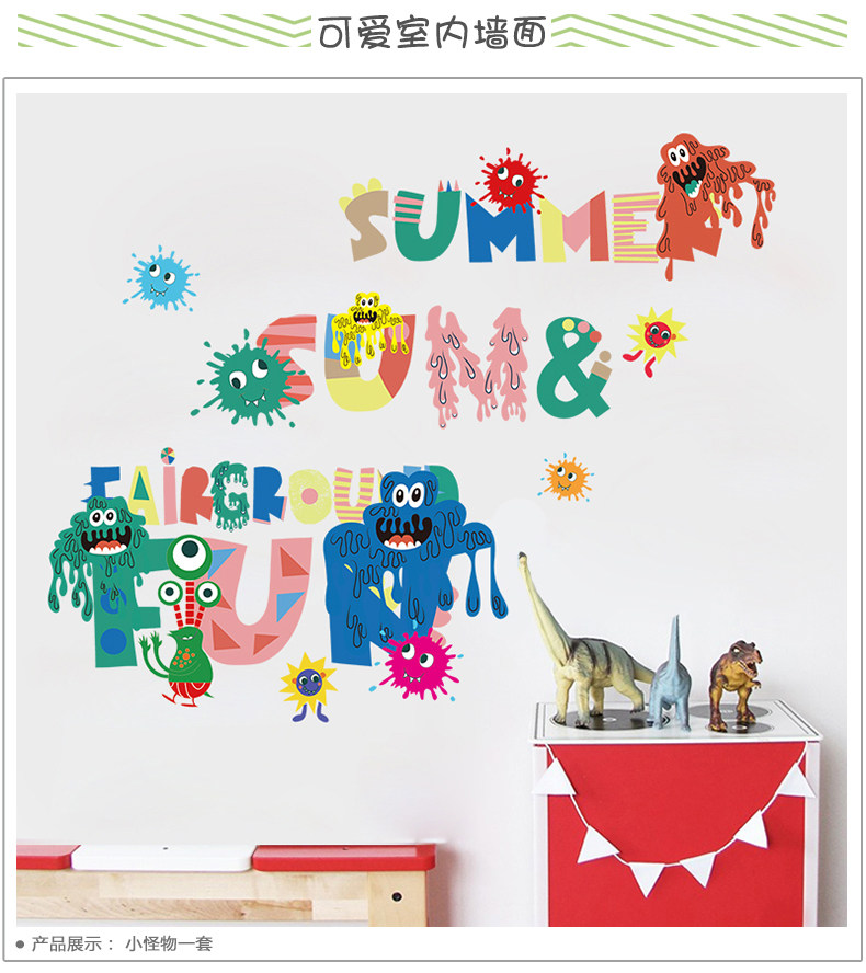 个性小怪兽墙贴创意儿童房幼儿园装饰教室学校英文字母贴纸可移除