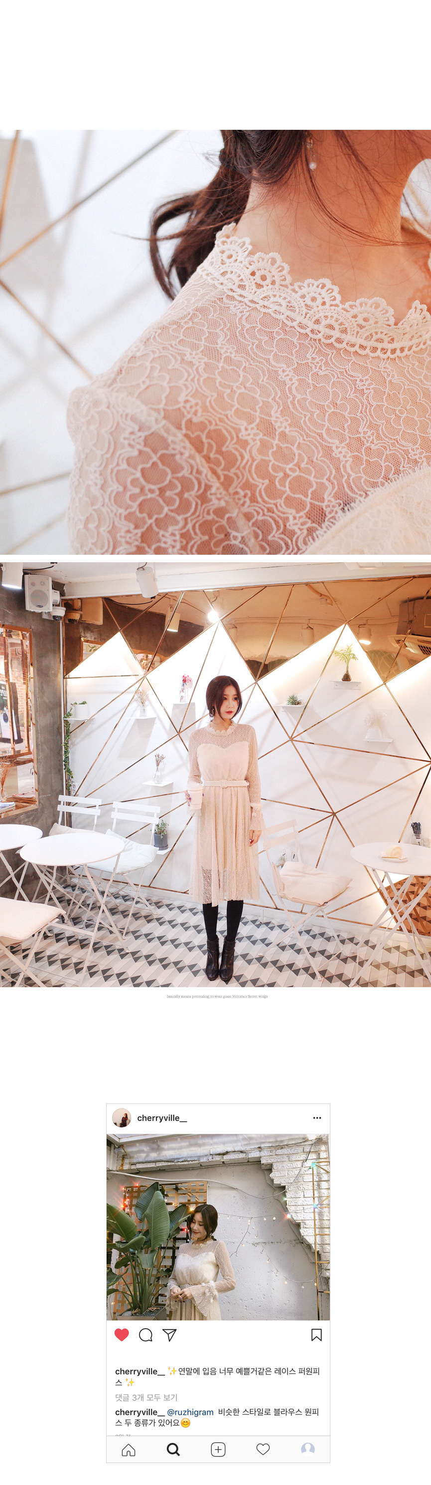 레이스 스타일로 여리함 강조해주는 원피스입니다