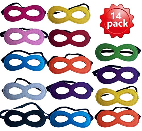 -. Feature : Super Masks 14 PCS , 14 Different Styles, Each Mask Has Two Colors. / Super Masks ( 17 CM / 6.7 inches ). One size fits all. / Super Masks 100% Felt, Safe, Non-Toxic, Environmental Protection. / It's The Best Product For Your Masquerade 、 Birthday Party 、 Halloween、Dress-Up 、etc. / Super Masks Are Soft Felt And Easily Adjustable To Strap Onto Any Size Head. Masks Have Two Colors,You Can Always Display Different Colors.