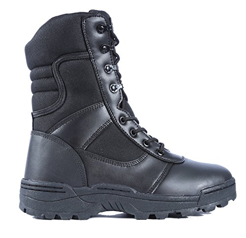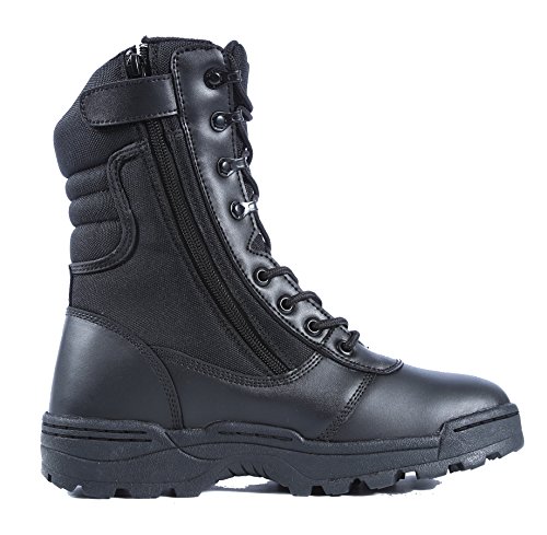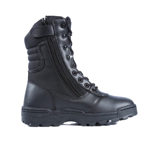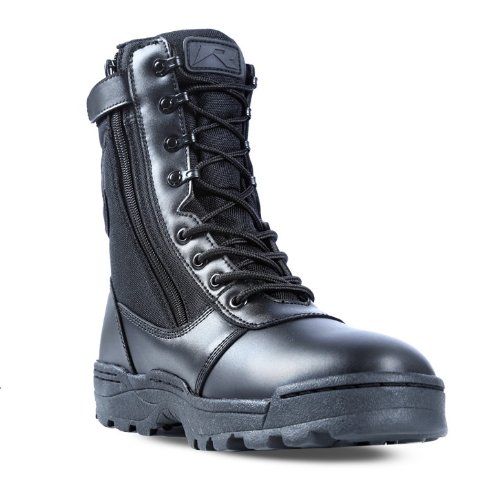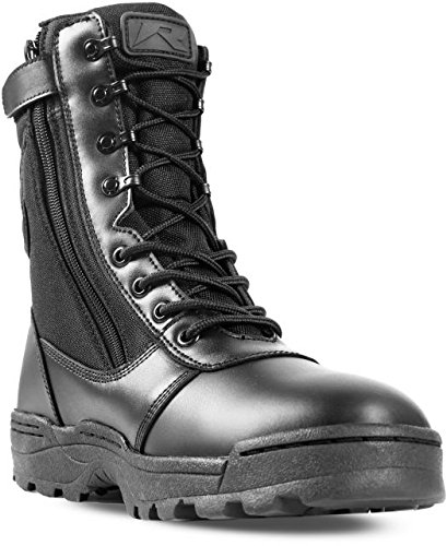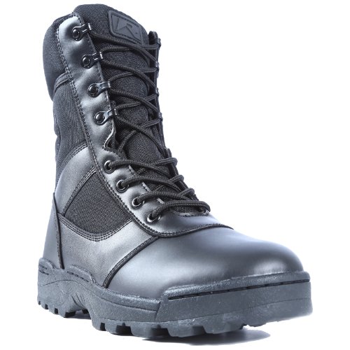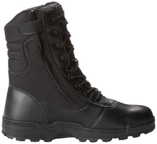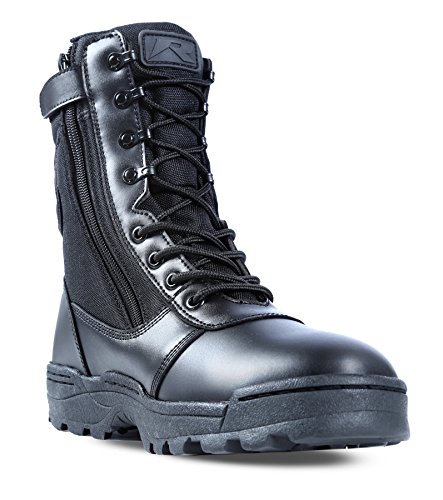 Studio : Ridge Footwear Publisher : Ridge Footwear Binding : Apparel Product Description Ridge Dura-Max 8" Side-Zip Duty Boots zip on for fast, tough traction so bad guys NEVER give you the slip! The ultimate in rapid-response traction and durability. Ridge Dura-Max 8" Side-Zip Boots are designed to lace up once, then zip on fast when seconds count and it's time to roll. And these boots will be on duty with you for years to come thanks to top-notch durability other boots just can't match. The secret is Ridge's double mated composite rubber sole that's glued and stitched to the upper - so secure Ridge guarantees zero sole separation even under 2 years of constant use! Lace up these duty-ready features: Full-grain leather and 1000-denier nylon upper is the perfect combination of lightweight and durability; No metal hardware - speed through airport and other security checks fast and easy; Smooth operating, full-length YKK side zipper for easy on / off; VELCRO brand closure top strap; Ridge Dura-sole features one-piece carbon rubber construction that is glued and stitched to the upper to end sole separation worries; Cushioning polyurethane midsole Slip resistant, oil-resistant tread features self-cleaning lugs; Composite shank gives you extra stability for rough terrain and life on the run without added weight; Removable contoured insole; Moisture-wicking lining keeps feet dry and comfortable; Composite eyelets and hook lacing system; Each is approx. 8" h., 24 ozs. State Size and Width. Order right away! Men's Ridge Dura-Max 8" Side-Zip Duty Boots 0