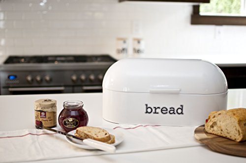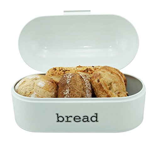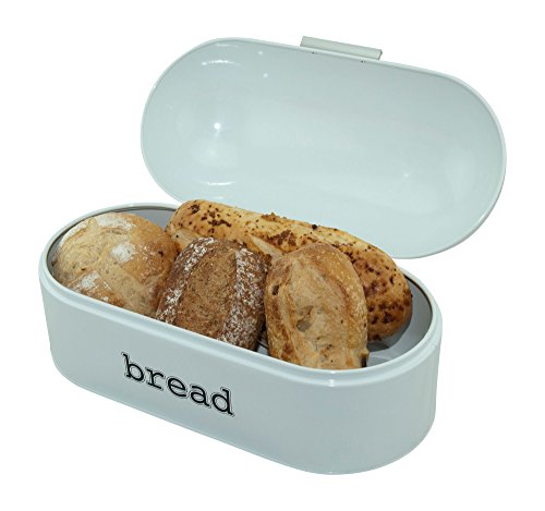 White Bread Box for Kitchen - Retro Bread Box for Organizing your homemade bread, pastries, loaves and more. Keep Fresh Bread Longer. Wide metal bread bin measuring 17 x 9 x 8, Vintage bread box