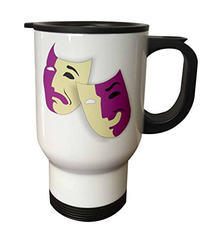 3dRose tm_183314_1 Drama and Comedy Masks Cartoon Travel Mug, 14 oz, White