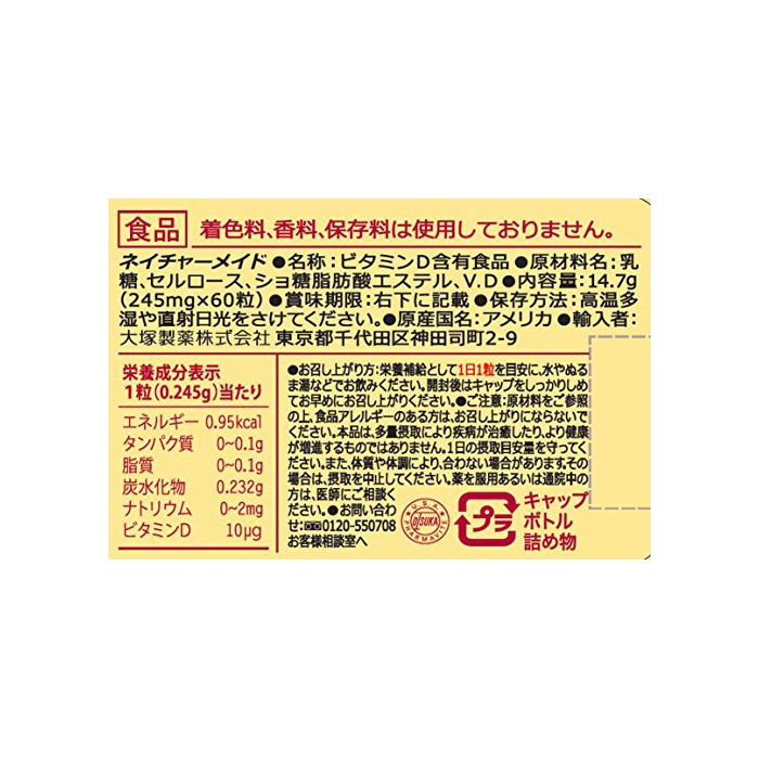 원본상품명: 大塚製? ネイチャ?メイド ビタミンD(400I.U.) 60粒