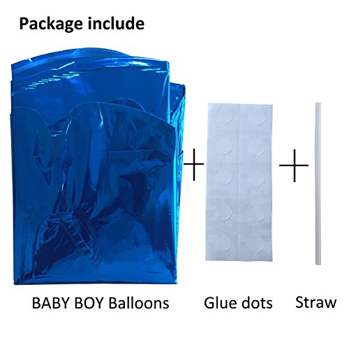 -. Feature : Foil balloons, mylar balloons Perfect for baby shower, decorating the kids, babies, adults birthday party, Festival Party Decoration / 10" Mylar BABY BOY Decorations letter Balloons Create the perfect photo backdrop with these balloons, made of durable Mylar high quality aluminum foil material / Baby shower balloon letters, string, straw and glue included, This balloons is self sealing so no tying with fingers required / Boy firth birthday balloons, these foil balloons are not suitable to inflate with helium due to its relatively heavy weight.(air CAN'T FLOAT), you can inflate with air use straw, convenient / Shower decorations, 10 inches of birthday foil letter balloon, includes letters balloon, rope, straw and 10 glue , balloons can be easily stick to the wall or hang on in any background
