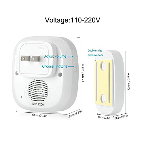 A stylish modern design in classic timeless white with blue LED light, which adds charming to your house; Item Size: Receievr 80*86*29(mm) ;Transmitter 71*41*18(mm)