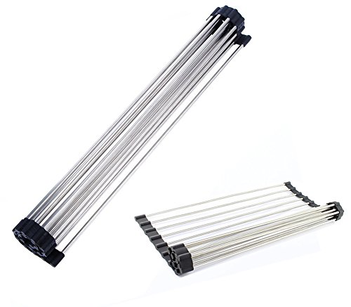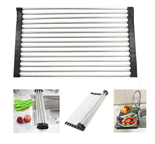 Obecome Stainless Steel Kitchen Dish Drainer Rack– Rollable, Foldable, Durable and Easy to Store (Black)