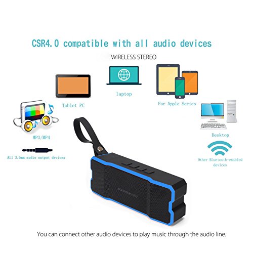 -. Title : Outdoor Waterproof Bluetooth Speakers V4.0 By BOOMER VIVI Wireless Speaker With 5W2 Bass, Hi-Fi Quality, Multi-Room Loud Sound, 12 hrs Playtime Durable Design for iPhone, Sumsang