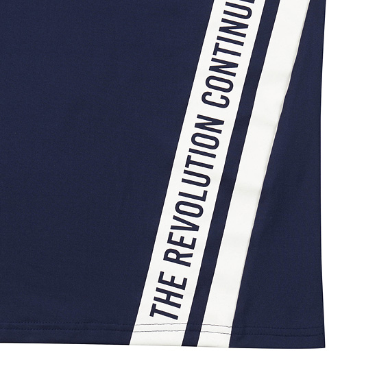 - 솔리드 블루 컬러에 사이드 레터링 프린트로 포인트를 주어