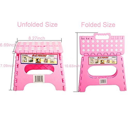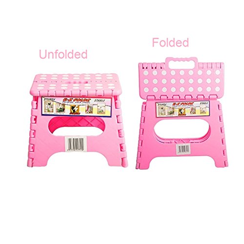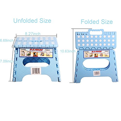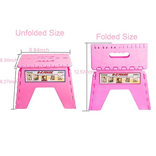 -. Feature : Material: Thick PP plastic with stainless steel screws, non-toxic and very sturdy, can holds up to 286 lbs. / Product Size: About 11.22*10.83*8.66Inch [28.5*27.5*22cm]; Folding Height: About 15.75inch [40cm]. / This foldable step stool can fold up and pull out quickly with one hand, very easy and convenience for use. / It takes up very little space when storing, help you to save more space. / Can be used in kitchen, bathroom, living room, closets, RV's, etc.