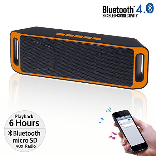 -. Feature : Support All Bluetooth enabled Devices such as iPhone and Android Phones | AUX from computers, laptop and other audio products | Micro SD Memory Card or USB Drive | FM Radio | Phone Call Hands-free Speakerphone / Fashion upscale appearance, the popular sense lines. Two 4 ohm 3W speaker with the full-range speakers, and is equipped with powerful bass diaphragm, independent of the speaker cavity, the perfect interpretation of all kinds of music, suitable for all kinds loving people to buy music, beautiful sound, easy to carry. / Bluetooth wireless transmission, to solve the usual long wire cable short, the trouble! Wireless, like where to put where placed. / You can answer the phone, connect the phone using Bluetooth, speakers with a microphone, you can easily use, zero radiation, the body good. Support FM radio function, use very convenient. Can plug micro SD memory card and USB Driver disk for MP3 player to play music. / Universally Compatible but not limited to all Bluetooth enabled phones or devices such as Apple iPhone 7, iPhone76 plus, iphone 6s, iPhone 6, iPad Air, iPad Mini, Samsung S7, S6, Note 6, Note 5, Galaxy Tab, Google Pixel, Nexus, HTC, Nokia, LG, Motorola, BlackBerry, Sony, Indigi and so on.