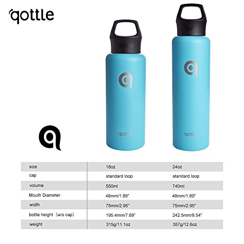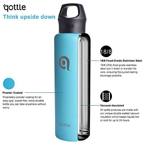 qottle 24oz Sport water Bottle - stainless Steel double wall Vacuum Insulated travel flask for hot and cold for outdoor camping hiking-Tiffany blue