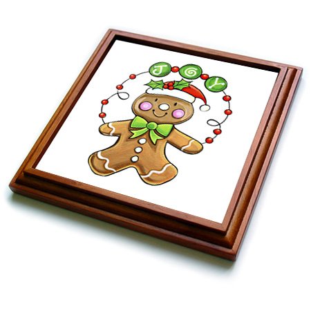 3dRose trv_35910_1 Joyful Gingerbread Trivet with Ceramic Tile, 8 by 8", Brown