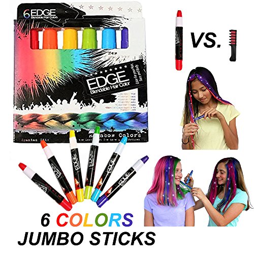 - ★ Hair Chalks Colored Pens - Rainbow Colors and Scented Fun To Use. 6 Colorful Hair Chalk Pens Edge Chalkers. Make Your Hair As Vibrant As You Are. Scented To Make Hair Smell Amazing And Look Amazing. For Halloween Christmas Party, Temporary Color For Girls For All Ages. Makes A Great Birthday Gifts For Girls, Works On All Hair Colors. 6 Edge Hair Stix Colors In All! Blendable Hair Stix With Easy Applicator Temporary Hair Color.
