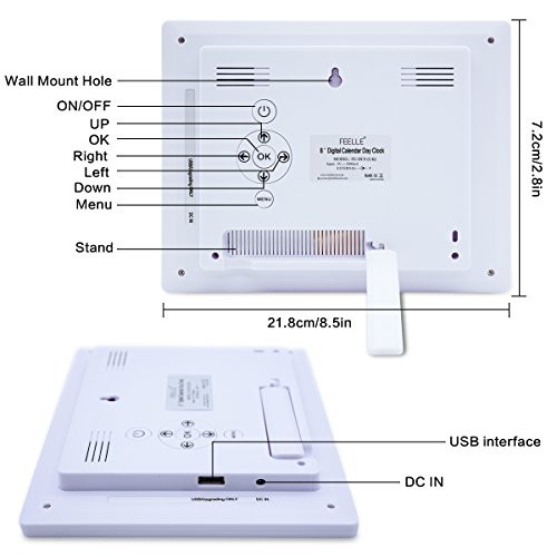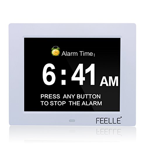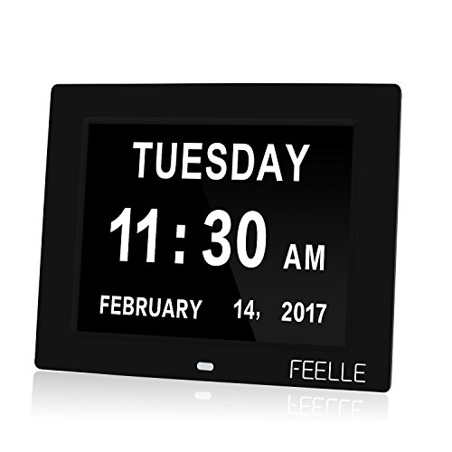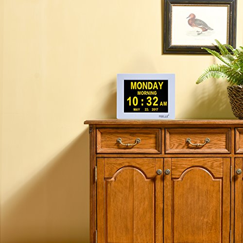 Feelle 8 Inch LCD Extra Large Digital Memory Loss Digital Calendar Day Clock Desk Shelf Clock.