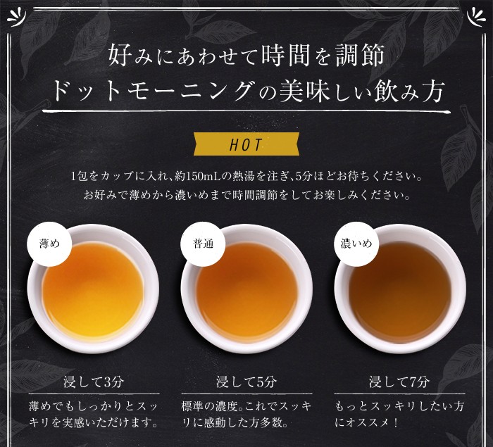 濃い目がお好みの方はティーバッグを約150mlのお湯で5分ほど煮てください。
