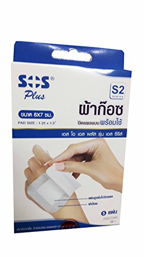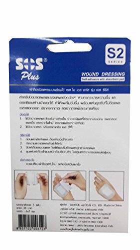 -. Feature : 3 packs of SOS Plus S2 Series Wound Dressing and self adhesive with absorbent pad. / size 6x7cm. (5 pads/ pack), Latex free., sterile / indication: Helps prevent infection in minor cuts, scrapes & burns. / Directions : 1.Clean the affected area, 2.Cover with SOS Plus, 3.Replace as needed. / "free!! sticker Thai_product, souvenir from Thai_product.,High Quality & Services by Thai_product. "