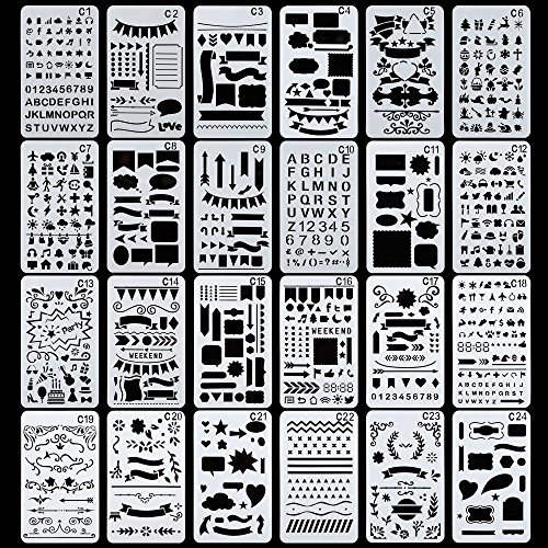 24 Pieces,Over 1200 New Different Patterns of Journal Stencil Painting Stencil Letter Stencil Planner Stencil for DIY Craft,Scrapbooking and DIY Craft