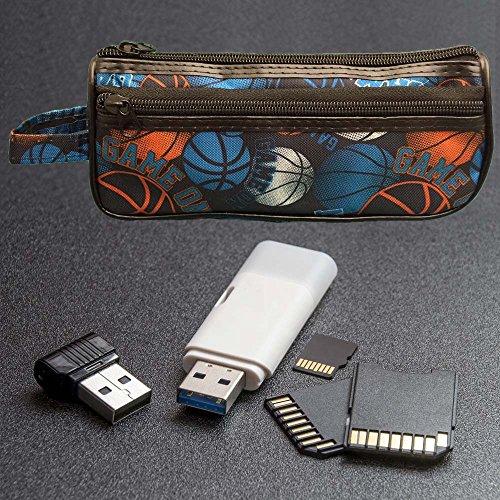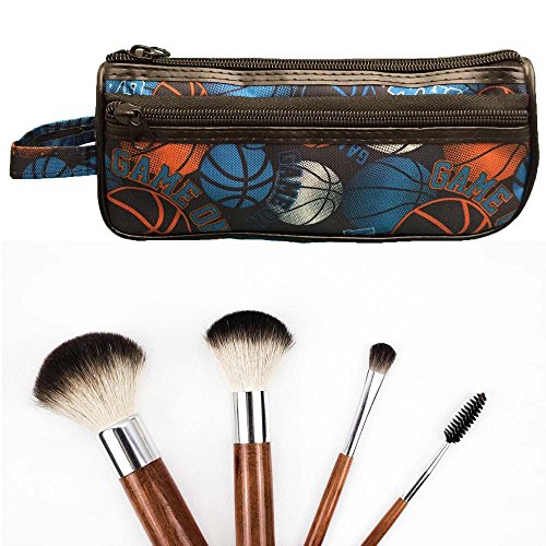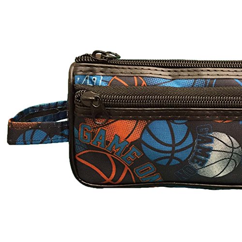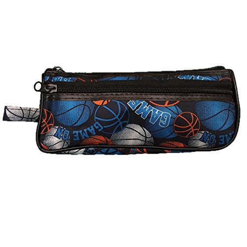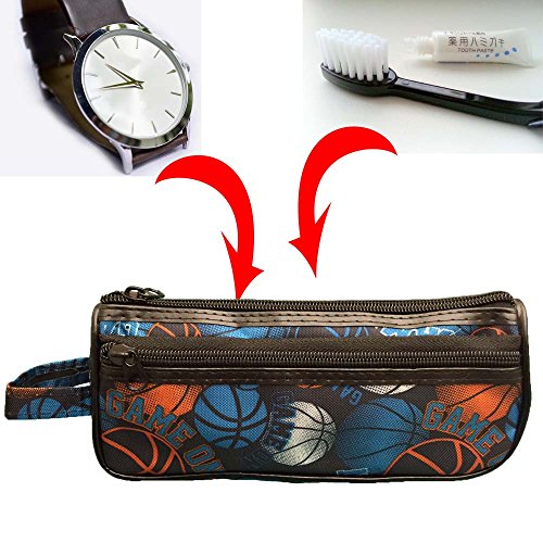 - SMALL BASKETBALL PATTERN TOILETRY TRAVEL CASE: Multiple Use Travel Zip Case in a thin, picture photo rectangular size designed for arts and craft supplies (pencils, paintbrush, seamstress sewing scissors, embroidery thread), cosmetics, thin toiletry items, jewelry, or electronic accessories.