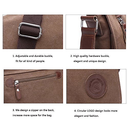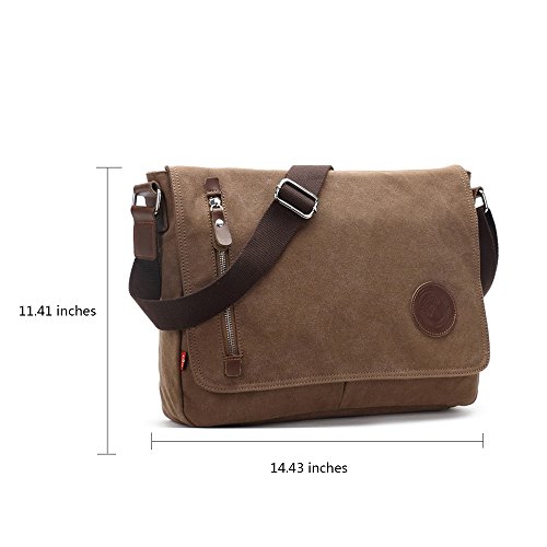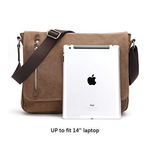 -. Feature : HUMANZIED DESIGN FOR MULTIPLE POCKETS: A total of 8 pockets. The messenger bag features a main zipper Pocket, 2 open inner big pockets, 1 outer zipper pocket and 1 back zipper pocket. There is also a pocket with a zipper inside additionally for your money, wallets, important notes which can be zipped up and secured. The other two small pocket can keep a little things. Enough sapce to ccommodate things such as pen /U-disk/recorder pen/cellphone /earbuds/ipod. / LARGE MAIN COMPARTMENT FOR COMPUTER OR KINDLE: This messenger bag can accommodate up to 14 inches laptop, can not fit for larger computer. 13 inches laptop and a 14 inch Vaio will be suitable. This satchel could also be a professional briefcase. / DELICATELY VELCRO SNAPS &ADJUSTABLE SHOULDER STRAP: The messenger bag features a wide shoulder strap that eliminates shoulder fatigue, you can adjusted to preferred lengths effortlessly . The bag can be carried by the handle, worn on shoulders, and positioned across body,and easily adjust its length when needed. / PREMIUM HIGH-DENSITY CANVAS: This messenger bag are made of thick, waterproof and scratch-resistant, durable materials with excellent quality. The zipper of bag are made of hight quality cowhide. / A PERFECT DESIGN FOR TRAVELING AND DAILY : It's a very good bag for working, short traveling, school and daily using; There are a lot of pockets for all kind of accessories. Lightweight design is easy for carrying.