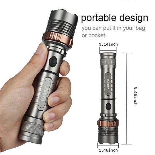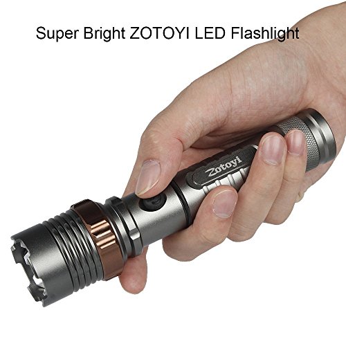 LED EDC Tactical Flashlight, Zotoyi Super Bright 1000 Lumens XML T6 LED Handheld Torch Light 18650 Rechargeable Flashlight Waterproof 5 Light Modes Zoomable Adjust Focus