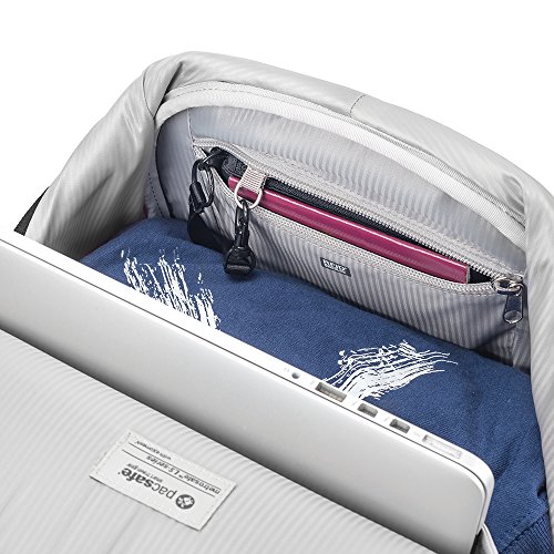Additional Metrosafe LS450 features include zippered main pocket and two front pockets with organization for cards, phone and passport, an iPad/15-inch laptop compatible sleeve, two side stretch pockets, and adjustable shoulders straps. It holds a volume of 25-liters and weighs just 1.75 pounds.