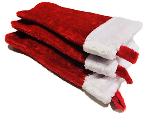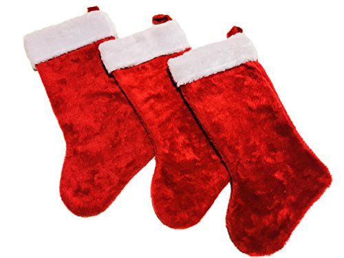 Set of 3: Christmas Stockings Classic Red 18" Fluffy White Cuffs Red Loop for Decorations and Stocking Stuffers