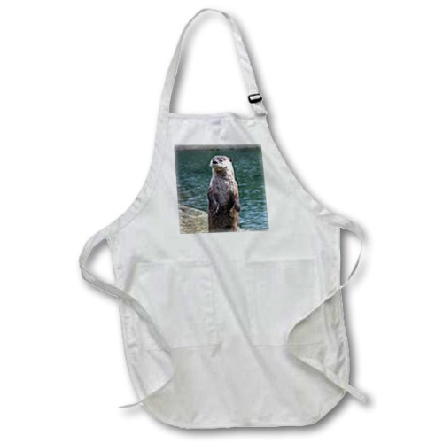 3dRose apr_4656_2 Otter Medium Length Apron with Pouch Pockets, 22 by 24-Inch