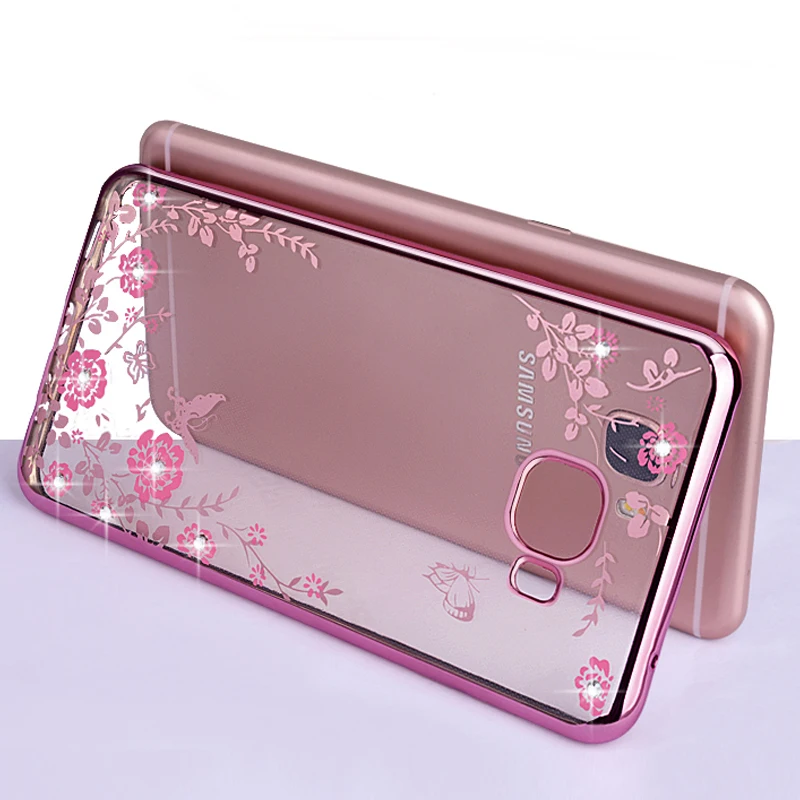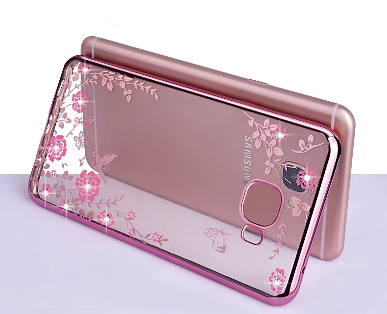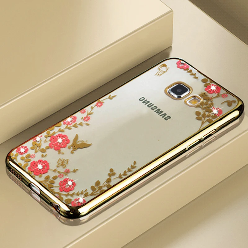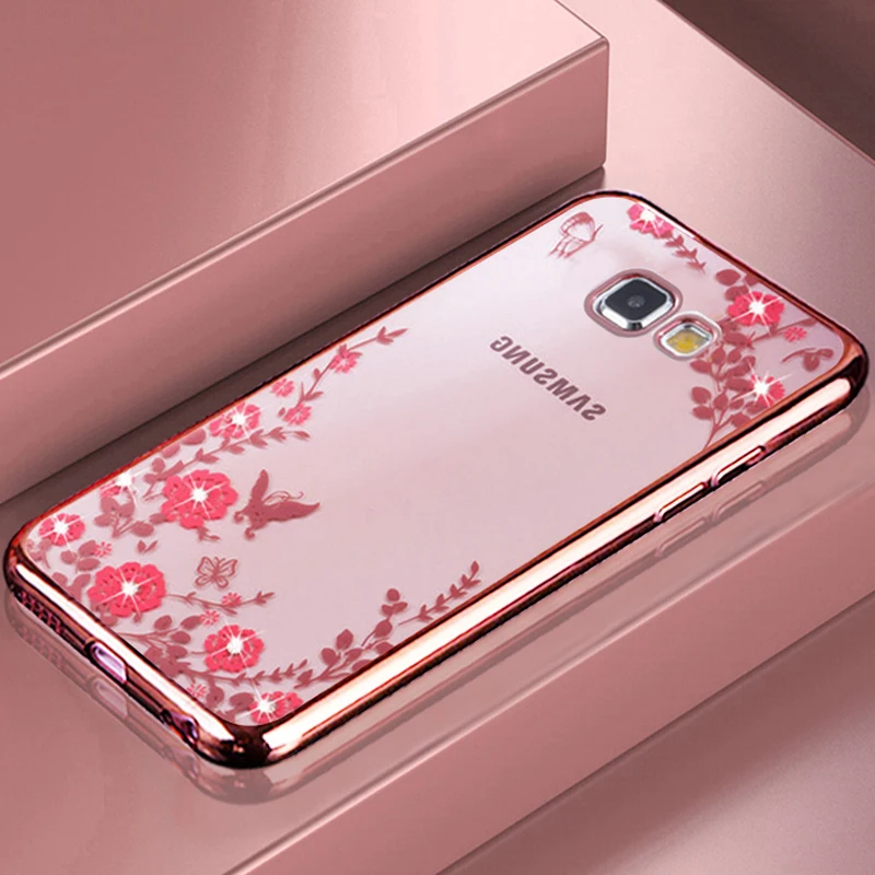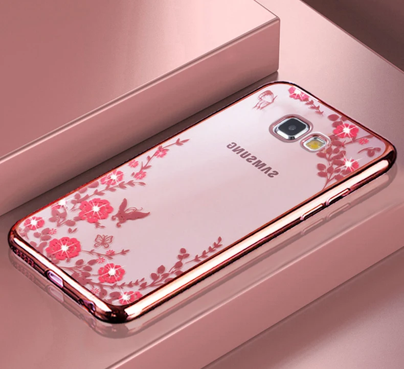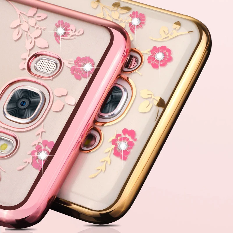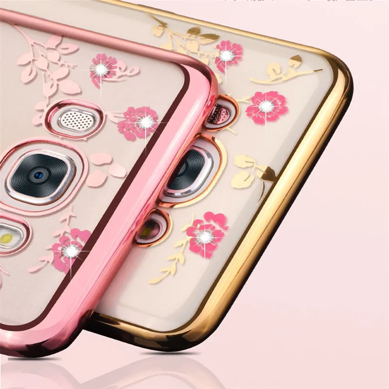 Features:Plating Rhinestone Floral Transparent Soft TPU Case