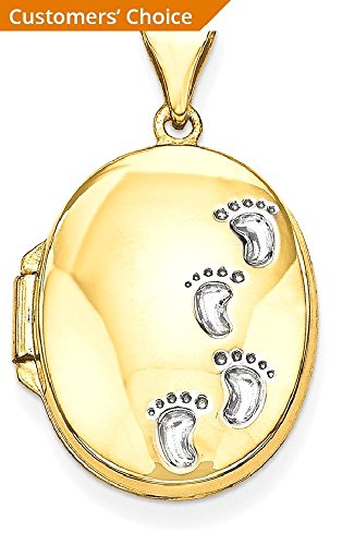 ICECARATS DESIGNER JEWELRY 14K YELLOW GOLD FOOTPRINTS PHOTO PENDANT CHARM LOCKET CHAIN NECKLACE THAT HOLDS PICTURES