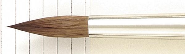 | 穂先は水を含むと膨張し、大量の絵具を含みます。そしてその絵具を意のままに好みの量をコントロールしながら描く感覚はまさに水彩画筆の極みといえるでしょう。110シリーズはより細く、細かな表現ができるよう穂先形状をシャープな形状にしています。 |