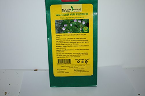 -. Feature : Smalfllower Hairy Willowherb (Herba Epilobium parviflorum) - Used for: Prostatic, gall bladder and kidney hypertrophy. / How to take: For oral use. The product should be prepared by pouring 250 ml cup of boiling water over one table spoon of the herb, allowing to infuse for 15 minutes. / How much to take: Take 200ml, one and a half hours before meals, twice a day. / Possible side effect: Continuous use may cause gastrointestinal disorders / Warning: If you are pregnant, nursing or taking any medication please consult your healthcare practitioner. Keep out of reach of children. Store at room temperature.