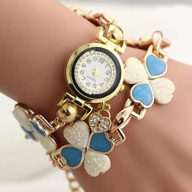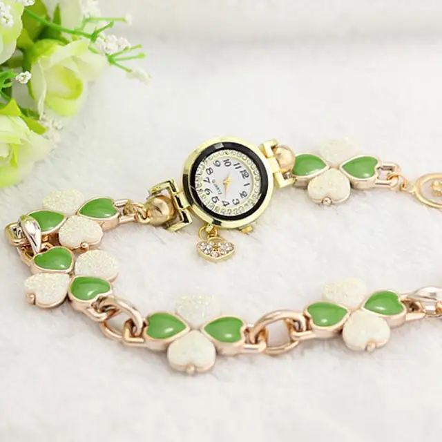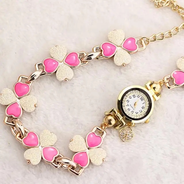 상품 내용 여성 복숭아 심장 라인 석 팔찌 시계 석영 손목 팔찌 특징: