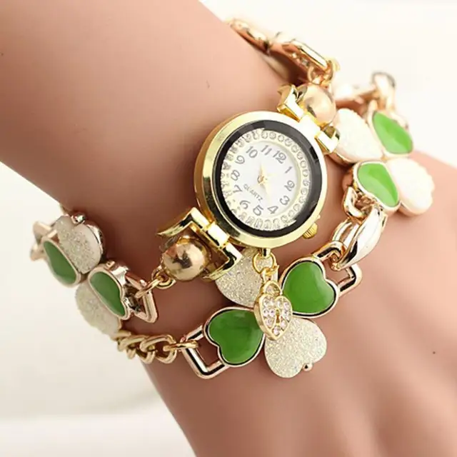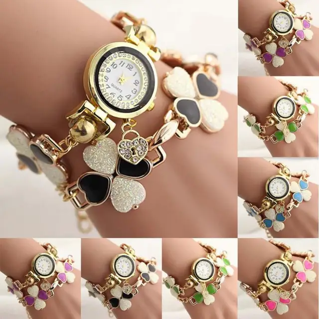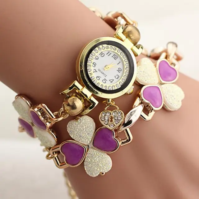 | [해외] 9 초 및 저렴한 여성 복숭아 심장 라인 석 팔찌 시계 석영 손목 팔찌 높은 품질의 시계 0717 |