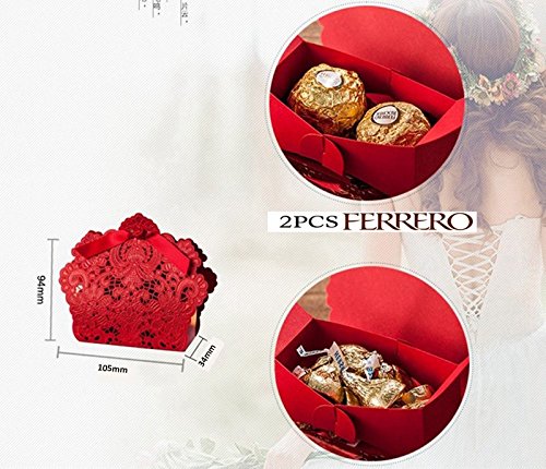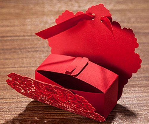 Doris Home Red Laser Cut Favor Candy Box With Ribbons Bridal Shower Wedding Party Favors 100 Pack