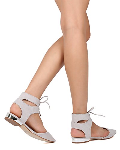 Qupid FI33 Women Faux Suede Pointy Toe d'Orsay Ankle Cuff Flat - Light Grey