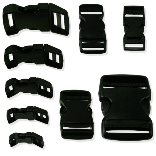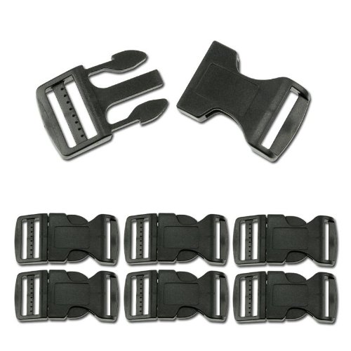 - Quick-release plastic buckles for nylon or canvas straps - strong and durable black thermoplastic