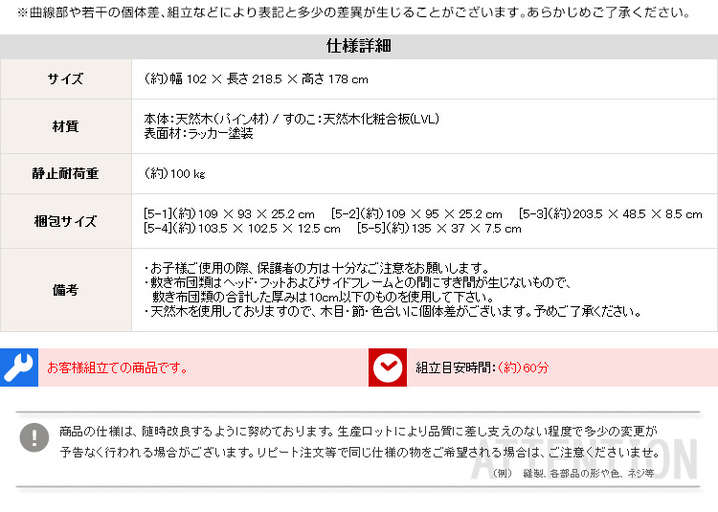 ●本体:天然木(パイン材)/すのこ:天然木化粧合板(LVL)
