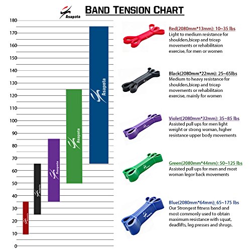 ?COLOR - SIZING ? Red Band (10-35 lbs) ? Purple Band (35 - 85lbs) ? Green Band (50 - 125lbs) ? Blue Band (60 - 175lbs) ? Black Band(25- 65 lbs) GREAT GIFT: Best gifts for GYMER. ??? Order today by clicking the "Add to Cart" tab, check them out for yourself and tell me what you think! The More you Use It, The More you Love it! 0 |