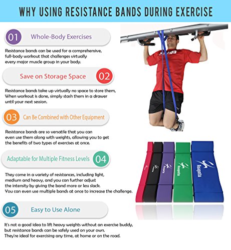 WHO ELSE WANTS A REAL PULL UP ASSIST BAND - EXTRA COMFOR PERFECT FIT PULL UP ASSIST BANDS: #1 Hottest PULL UP ASSIST BAND on Amazon! Highest-rated PROTECTIVE SPORT retainler and rated customer service in the U.S. PREMIUM PULL UP ASSIST BAND DESIGNED TO INCREASE YOUR PERFORMANCE AND BODY EXERCISES! BENEFIT FROM USING PULL UP ASSIST BAND? ? GET AN EFFECTIVE WORKOUT Although there are differences between free weight and resistance band exercises, both are effective. Picture the arc motion your arm makes while doing a bicep curl. Free weights will feel heaviest at the beginning of that arc, while resistance bands make your muscles work harder at the end of the arc. ? COMBINE WITH OTHER EXERCISE EQUIPMENT While resistance bands work great on their own, they can also be combined with other exercise equipment. Performing bicep curls with both a resistance band and a dumbbell will give you the combined benefits of each type of equipment. ? ADD VARIETY TO YOUR WORKOUTS Over time, your muscles adapt to any new exercise routine. It's a good idea to mix it up by cross-training with free weights, machines and resistance band exercises. Each will work your muscles in a slightly different way. What About All The Special Features? ?100% Brand new, never be used.