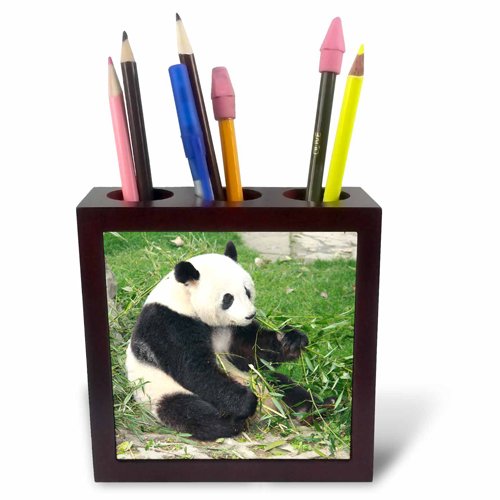 3dRose ph_100290_1 Panda Bear Eating Bamboo, Sichuan Province, China-Tile Pen Holder, 5-Inch