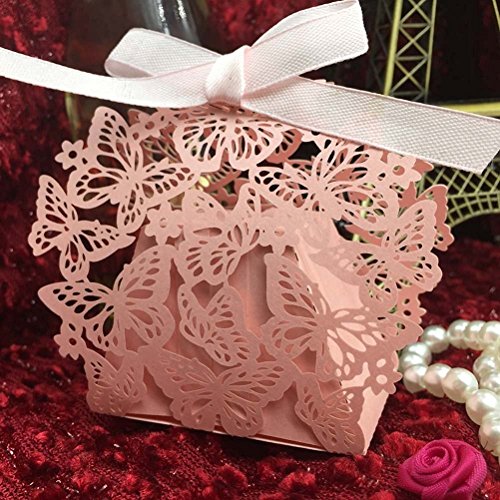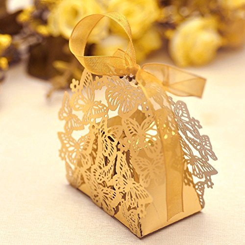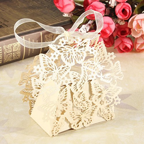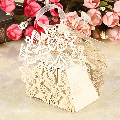 -. Binding : Kitchen -. Brand : PONATIA -. Color : Beige -. Feature : Great for baby shower favour boxes, Bommboniere or candy boxes.It can accommodate 2 Ferrero / Material:permium paper.Size:approx.5 x 5 x 7.5 cm. / Each box comes with Organza Ribbon for you to tie them together or attach tags / Hollow carved style.Boxes come flat packed and easily assembled.Come with ribbons / If you want to customize, please contact the seller. -. IsAutographed : 0 -. Label : PONATIA -. Manufacturer : PONATIA -. PackageQuantity : 50 -. ProductGroup : Home -. ProductTypeName : HOME -. Publisher : PONATIA -. Studio : PONATIA -. Title : 50 Pack Laser Cut Butterfly Wedding Favour Box With Organza Ribbon Birthday Party Candy Boxes