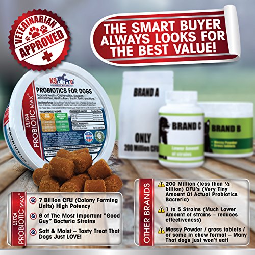 - 7 Billion CFU or Colony Forming Units and 6 Strains per chew makes this a top dog probiotics supplement available anywhere.