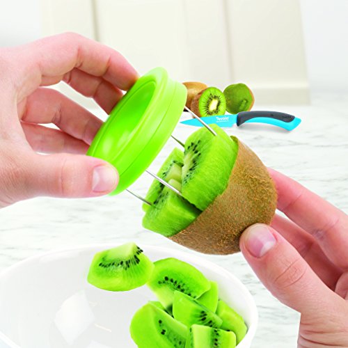 Studio : Tovolo Publisher : Tovolo Binding : Kitchen Product Description Tired of struggling to peel kiwis? Using the Tovolo 2-in-1 Kiwi Tool's sturdy, stainless steel wires, perfectly peel and quarter your kiwi with one easy motion. With an easy-grip handle, using this kiwi tool is fun, practical, and comfortable. This tool segments kiwi into ideal sized pieces for your fruit salad or snack and completely removes kiwi from skin. The dimensions the Tovolo Kiwi Tool is 2.76 x 2.88 x 2.88 inches and it is dishwasher safe. 0