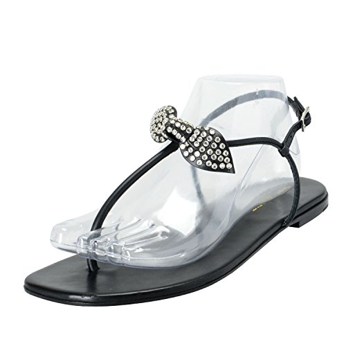 Product DescriptionSaint Laurent Women's Black Leather Flat Sandals Shoes0
