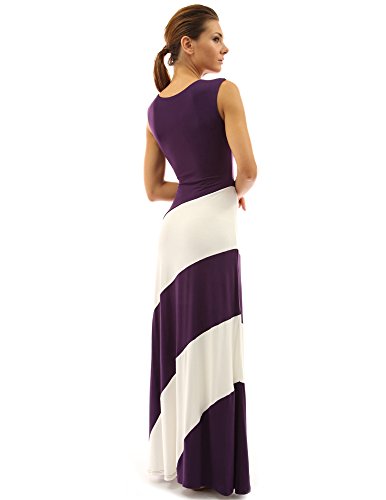 PattyBoutik V Neck Sleeveless Striped Full Length Spring Summer Beach Maxi Dress. Model in pictures is 5 feet 8 inches (173cm) tall wearing a pair of flat sandals.