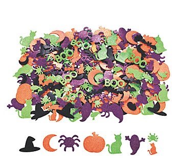 - Glitter Halloween Adhesive Foam Shapes 500 per package Each is 1" - 2 1/8" come in black, orange, purple and green
